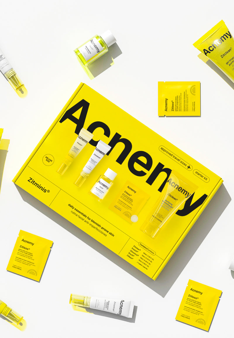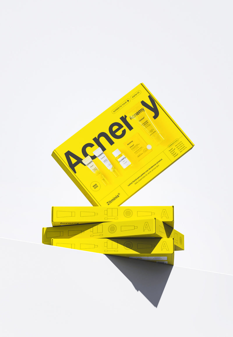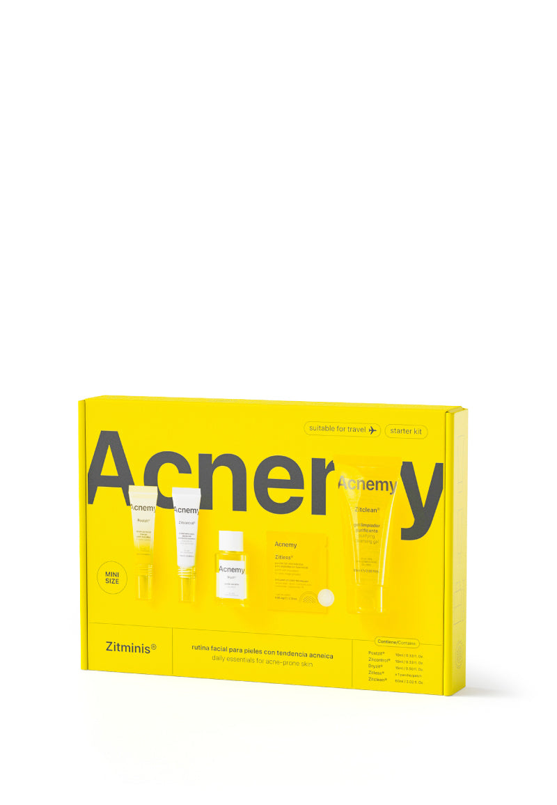 Discover Zitminis®, the discovery kit for a complete anti-acne routine for acne-prone skin that includes all five Acnemy essentials in mini format. The perfect set to try out the Acnemy products or to get your favorites in travel size and take them with you wherever you go.