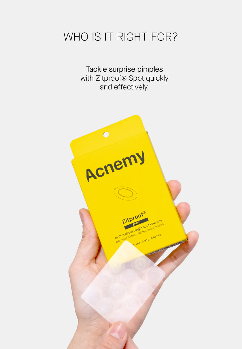 Who hasn't experienced it at some point: you wake up in the morning and... a pimple appears! Get rid of those surprise pimples that appear at the worst possible moment quickly and effectively with our Zitproof® Spot.