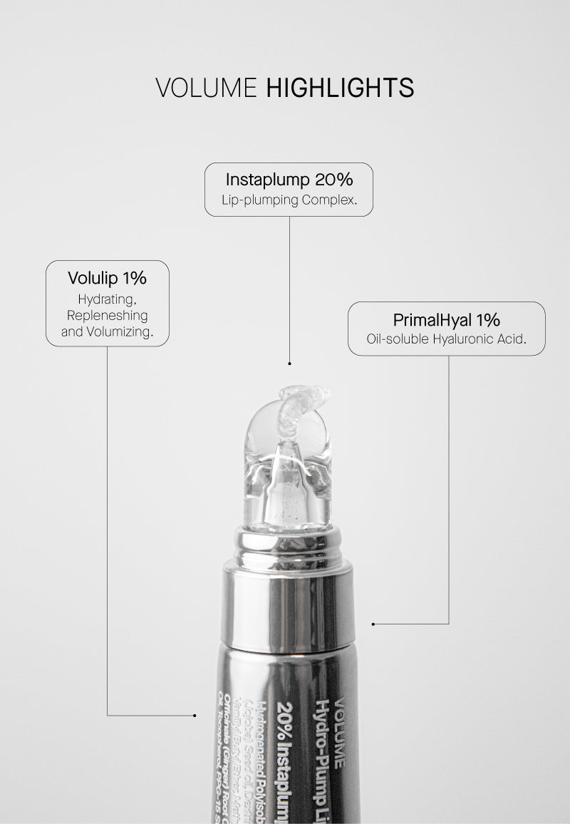 - With Hyaluronic Acid and VolulipTM to improve lip volume, hydration, smoothness, shape and texture with a long-lasting effect.